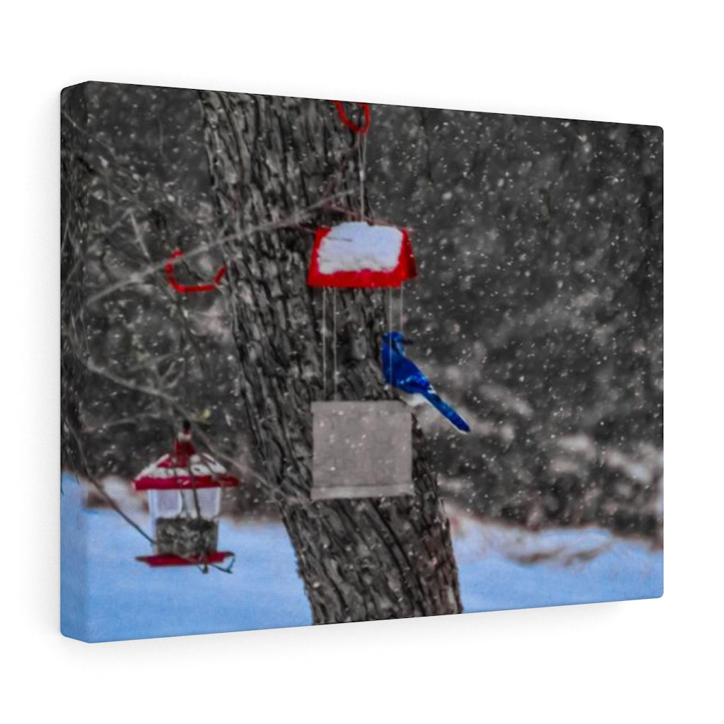 Blue Jay in Winter Stretched Canvas