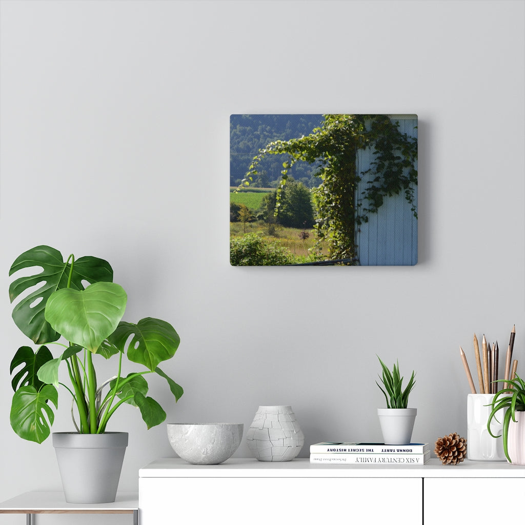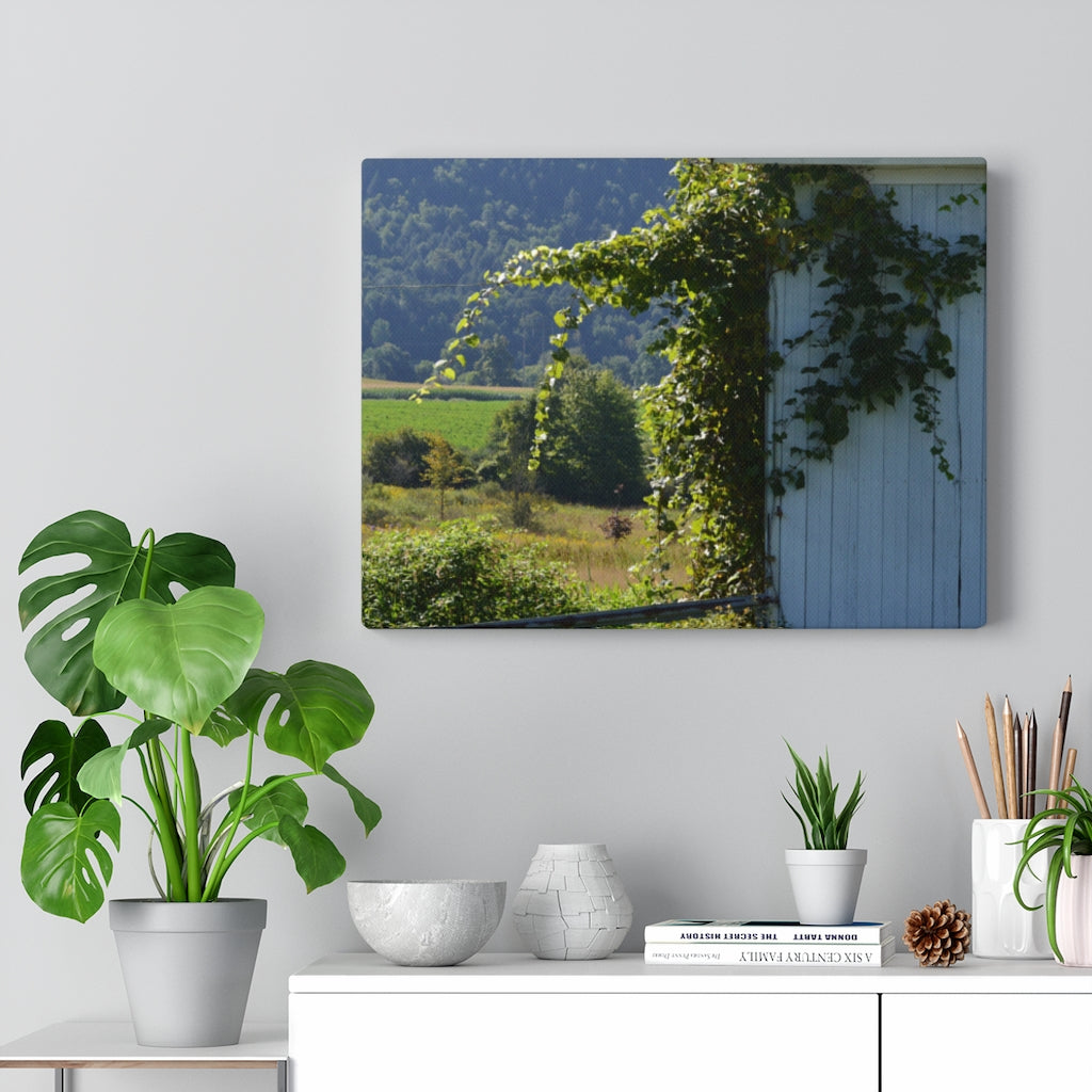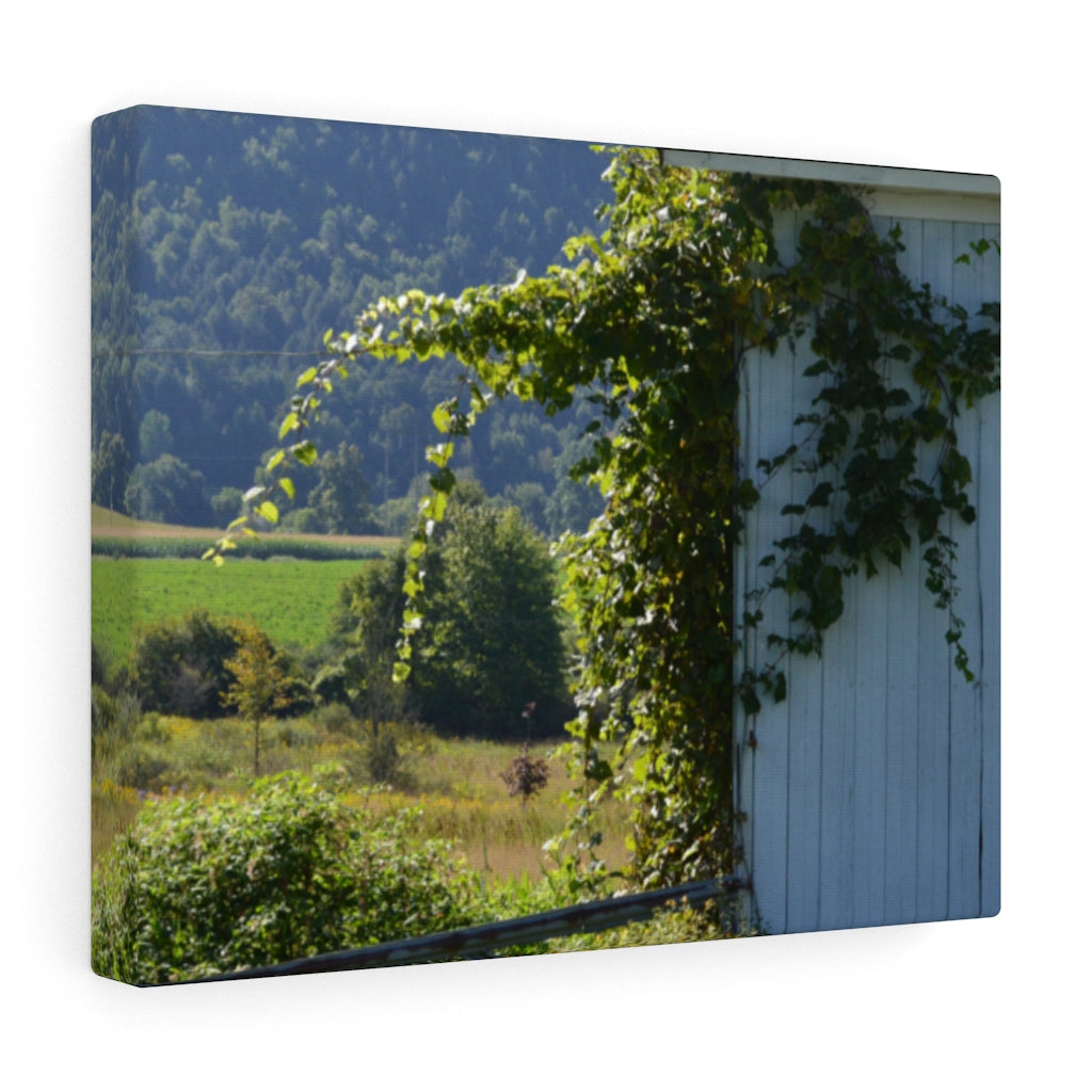 Featuring the photo of a White Barn covered in Ivy in the town of Sherburne, NY, this custom stretched canvas print is made from treated cotton - providing the smoothest of matte surfaces for exceptional design vividity. A combination of quality and durability, these hangings come with a lifelong color guarantee; there's significant confidence in their withstanding the test of time. On the backside, pre-installed hanging hardware ensures proper locking to walls.